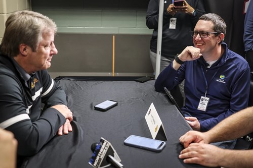 Wellens (right, in photo) has been the men's and women’s hockey beat writer for the Minnesota Duluth Bulldogs since the 2014-15 season, which was the second year of NCHC play. He has now covered the Bulldogs and the conference for 12 seasons, including two UMD men's National Championships, attending every in-person NCHC Media Day and nearly every Frozen Faceoff, even if Minnesota Duluth wasn't playing.